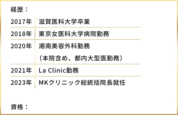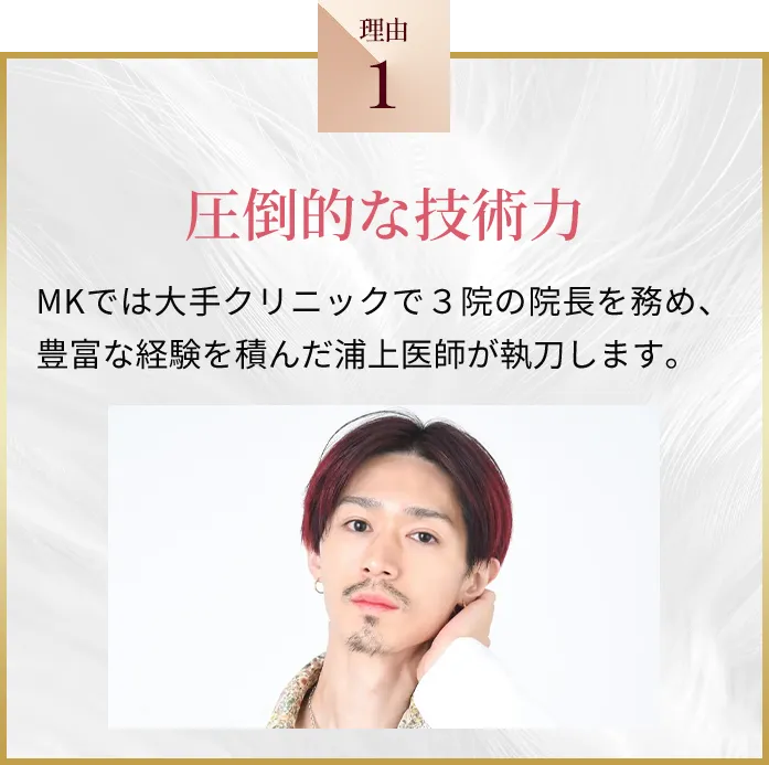 心臓血管外科で培った手技を活かし、豊胸、二重や鼻整形、リフトアップなどの施術を行っています。当院医師は美容外科医として、「患者様の”Quality of Life”を100点にする」をモットーに施術しています。美容医療を通じて、患者様のお悩みやコンプレックスに寄り添い、最適な施術をご提案いたします。